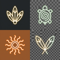 As ilustrações são artísticas e simbólicas, criadas para inspirar tranquilidade, beleza e conexão com a natureza — sem representar tribos específicas.